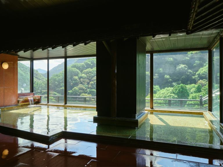 【유게츠노유 대욕장】단풍시기는 마치 그림 같은 아름다운 경치가 펼쳐집니다. (사진은 남탕)