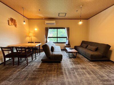 リビングのソファーベッドは寝具としてもご利用でき、最大4名様までお過ごしいただけます。